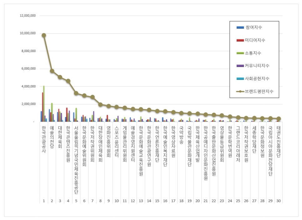문화체육관광부 공공기관 브랜드평판 2025년 12월 빅데이터 분석결과, 1위 한국관광공사 2위 예술의전당 3위 대한체육회 순으로 분석되었다.